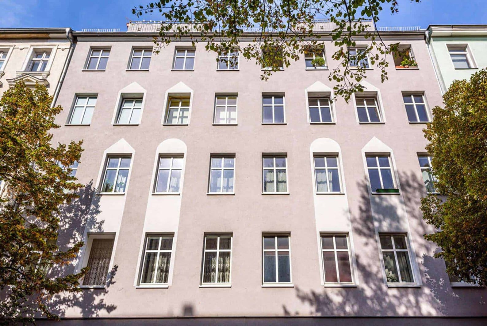 Clear forms with select old building details: this is how you could describe the residential buildings of Schöneweider Straße 17 in the neighborhood preservation area Rixdorf. Consisting of front building and garden house separated by an inner courtyard, they were erected in 1910.
