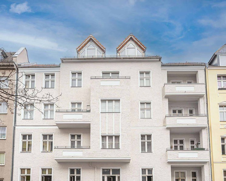 Built at the beginning of the 20th century, the apartment building at Fuldastrasse 9 consists of a front building, side wing and rear building, which are built in the classic perimeter block style and grouped around a green inner courtyard. The clear structure of the street façade is broken up here by balconies and bay windows.