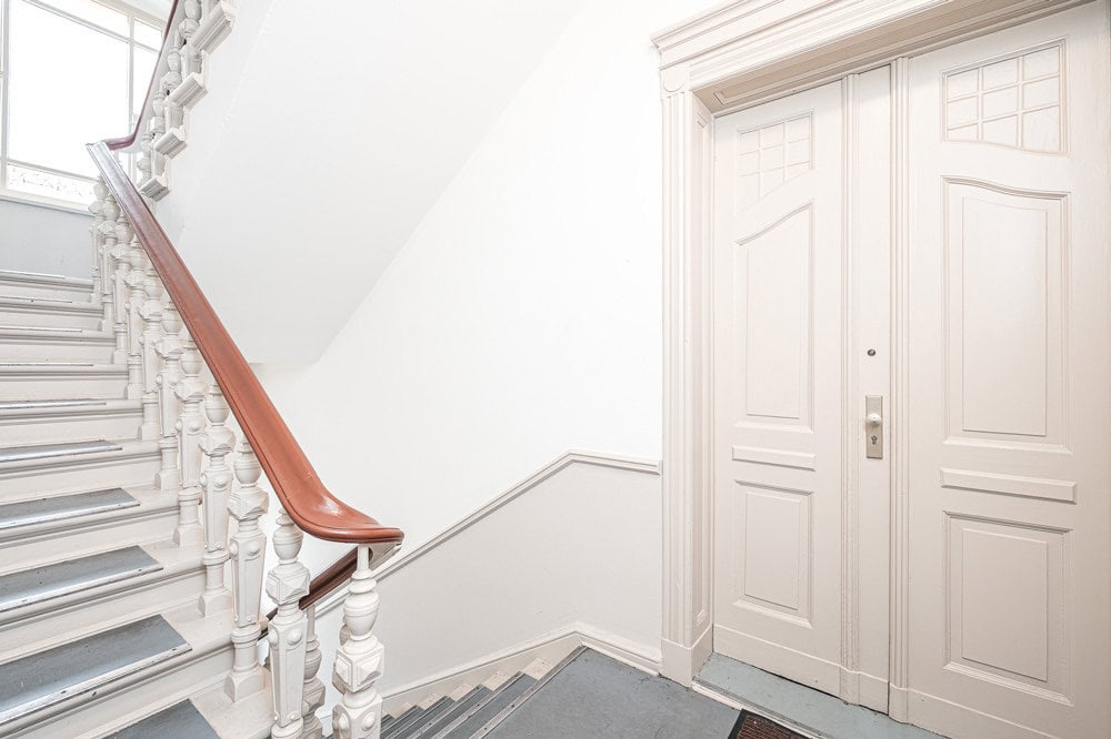 Upon entering, the house awaits with pretty old building details. Historic doors and staircase design bear witness to the architectural charm of the early 20th century