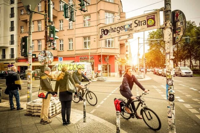 Important streets in the Boxhagener Kiez include Grünberger Straße, Wühlischstraße and Boxhagener Straße. The neighborhood is located in parking zone 50, where parking space management is in place and people who visit the neighborhood have to pay for parking. Most people in this neighbourhood try to get around by public transport or bicycle. The costs are limited and you save yourself the time-consuming search for a parking space.