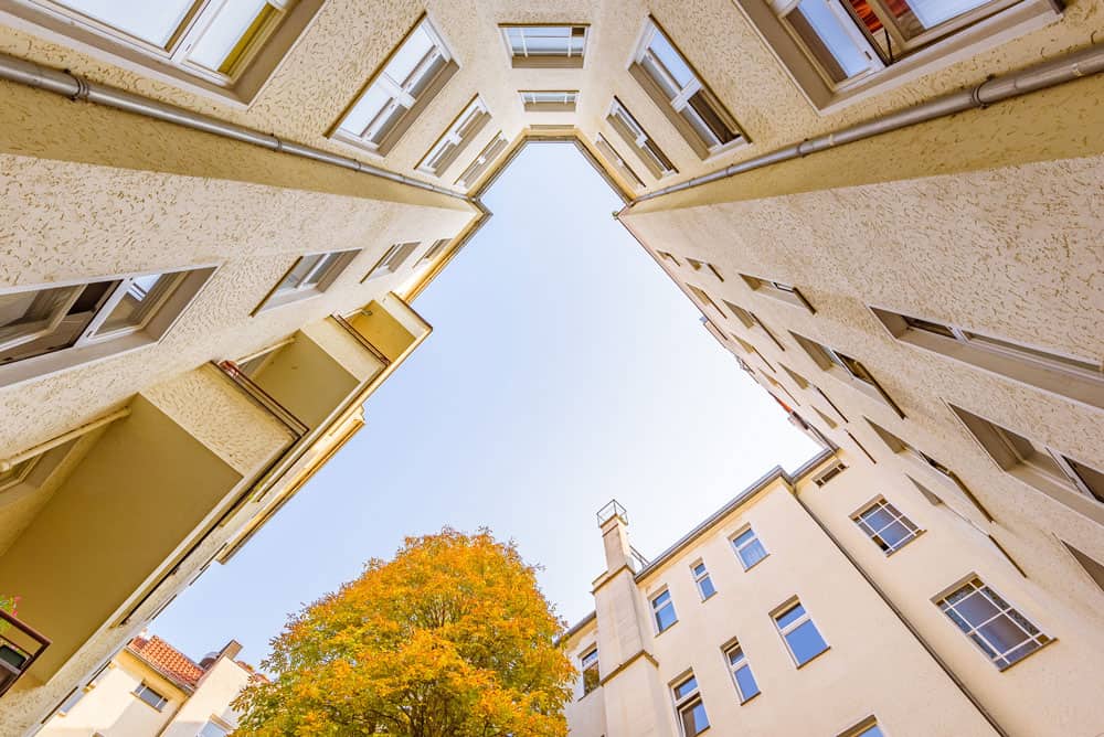 In the southern part of Wedding, in the Brüsseler Kiez, this ensemble of old buildings built in 1908 combines historical charm with urban living comfort. The building, consisting of a front building, side wings and rear building, surrounds a green inner courtyard in an almost square shape.