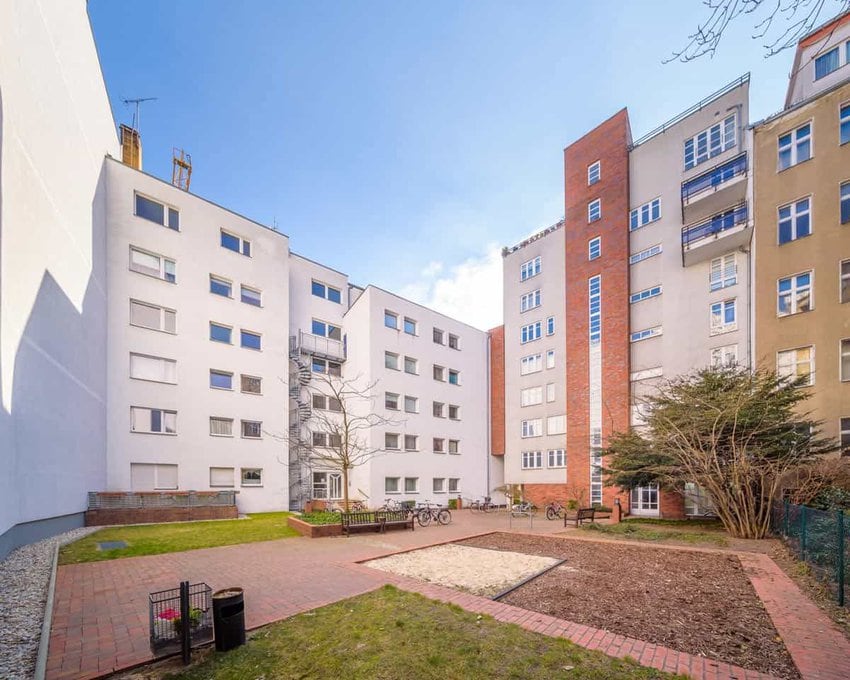Building no. 31 consists of five floors and is accessible via a courtyard entrance, while building no. 31a has nine floors for living and working and direct access from the quiet Düsseldorfer Strasse. Both buildings have an elevator and a full basement.