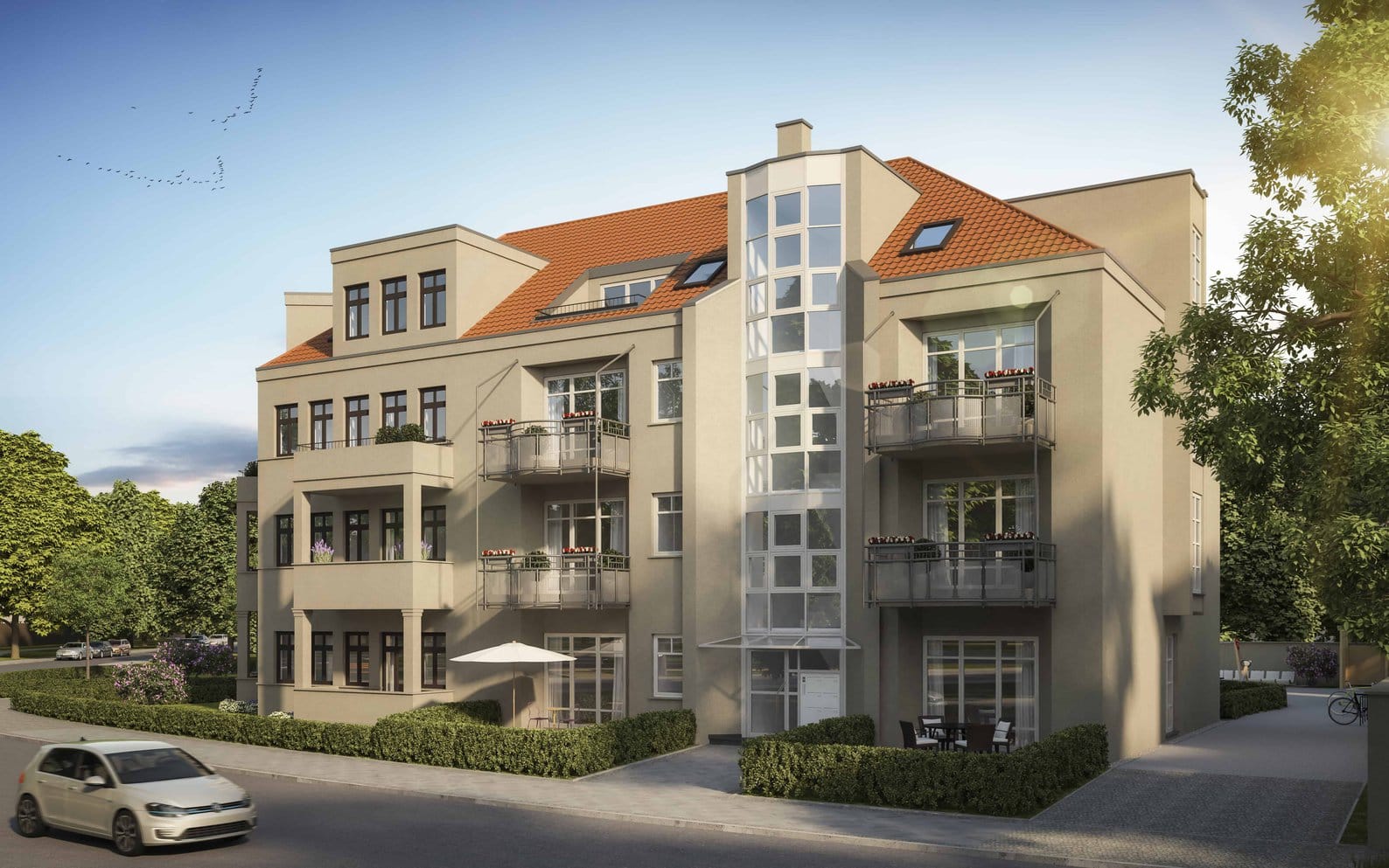The “VIS A VIS” project was created in the middle of the beautiful Jägervorstadt district. Quiet living and yet close to the action – that’s exactly what Schlegelstrasse 6 offered.