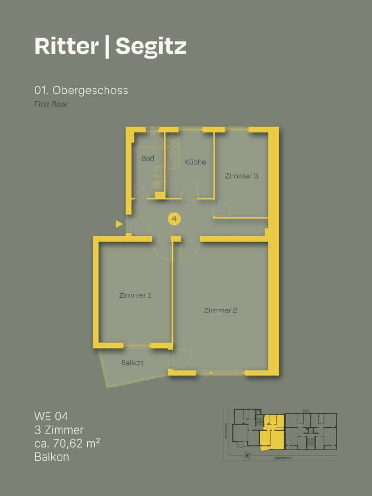 Die Eigentumswohnung im Ritter | Segitz überzeugt mit funktionalem Schnitt, Südostbalkon, der die Morgensonne einfängt, und hellen Zimmern. Der Zugang zur Wohnung erfolgt bequem über den Eingang in der Ritterstraße 1, wo ein Aufzug für komfortables Wohnen in allen Etagen sorgt.