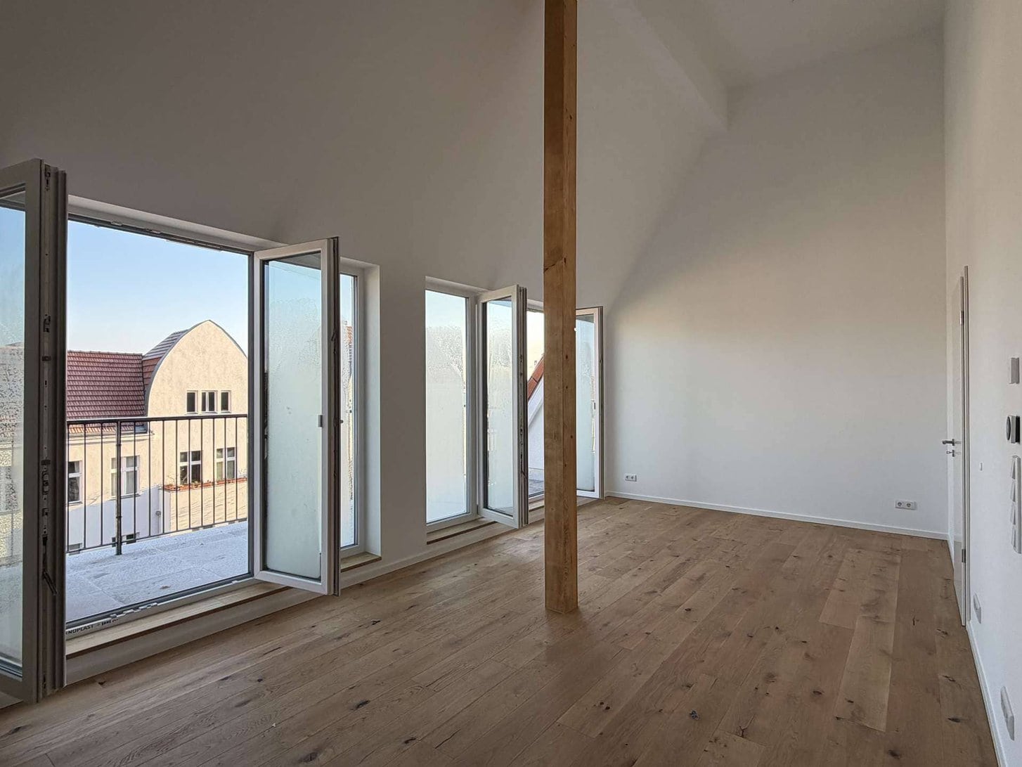 Diese außergewöhnliche Wohnung mit Galerieebene entstand im Zuge eines hochwertigen Dachausbaus und überzeugt mit einem spektakulären Grundriss sowie ca. 114 m² Wohnfläche. Herzstück der Wohnung ist die großzügige Wohnküche im 5. Obergeschoss mit Essbereich und direktem Terrassenzugang auf rund 35 m². Ein hofseitiges Schlafzimmer mit exklusivem Wannenbad sorgt für privaten Rückzugsraum, während straßenseitig wahlweise ein weiteres Schlafzimmer oder ein besonders großzügiger Wohnbereich realisiert werden kann.