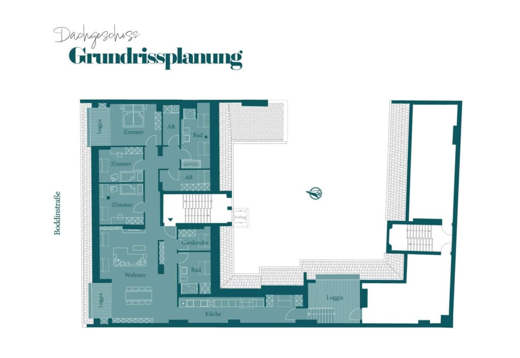 Das in den Anfängen des 20. Jahrhunderts errichtete Mehrfamilienhaus in der Boddinstraße 64 besteht aus Vorderhaus, Seitenflügel und Hinterhaus, die in klassischer Blockrandbebauung errichtet sind und sich um einen begrünten Innenhof gruppieren. In zurückhaltender Anmut zeigt sich die schöne straßenseitige Fassade, deren Stuckverzierungen Stilelemente des Jugendstils und des Art Déco aufgreifen. Erker und Balkone lockern hierbei das Fassadenbild auf und heben die gutbürgerliche Beschaulichkeit des Berliner Altbaus hervor. Treppenhaus und Hauseingang bestechen durch klare Formensprache mit zartem Stuck und floralen Details in Geländern und historischen Fensterverglasungen.