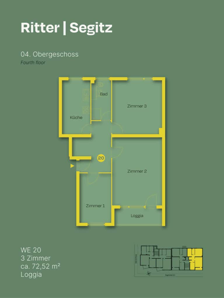 An der Ecke Ritterstraße 1 / Segitzdamm 14 treffen 22 Eigentumswohnungen auf eine lebendige Nachbarschaft zwischen Landwehrkanal, Oranienplatz und Kottbusser Tor. Das Wohnhaus besticht durch klare Linien, durchdachte Grundrisse und eine Architektur in der Formensprache der Wiederaufbauzeit. 2015 erhielt das Gebäude eine zusätzliche Etage mit zwei großzügigen Dachwohnungen und Blick über Berlin. Erschlossen wird das Haus über zwei Eingänge – von der Ritterstraße und vom Segitzdamm – mit komfortablem Zugang zu den oberen Etagen über Aufzüge.