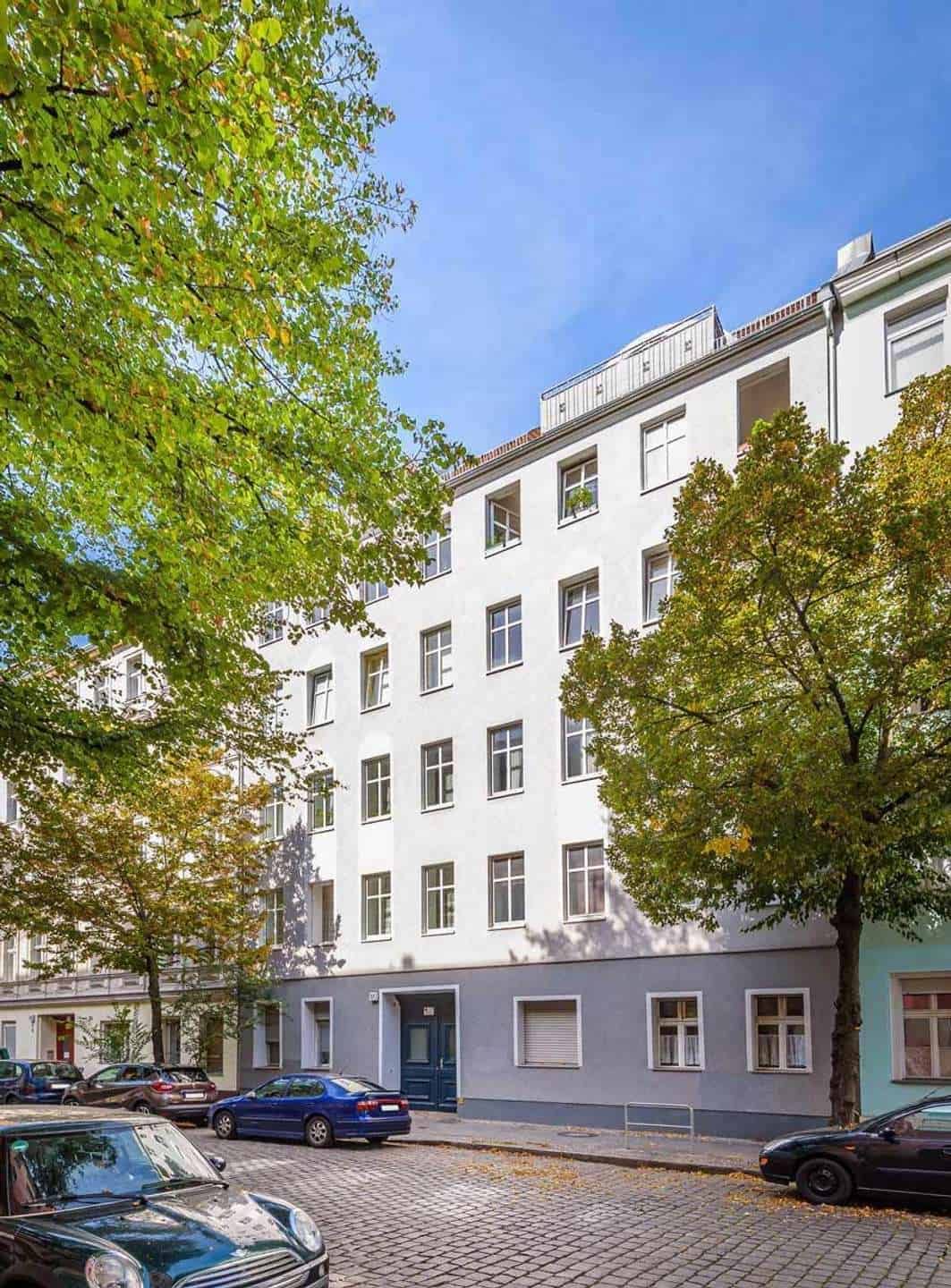 Klare Formen mit ausgesuchten Altbaudetails: So lassen sich die Wohngebäude der Schöneweider Straße 17 im Milieuschutzgebiet Rixdorf beschreiben. Bestehend aus Vorderhaus und Gartenhaus, welche durch einen Innenhof getrennt werden, wurden sie im Jahr 1910 erbaut.