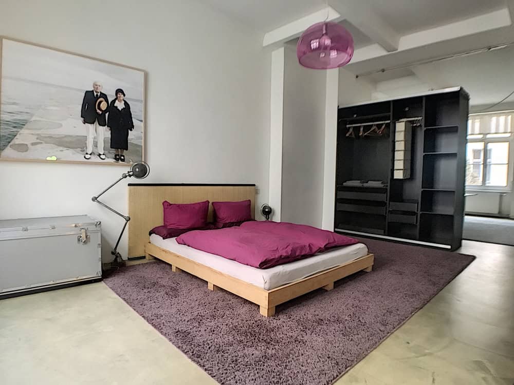 Der historische Lastenaufzug hält direkt vor der Einheit. Selbst Elektrik und Heizkörper orientieren sich hier am historischen Industrie-Design und runden den einmaligen Charakter der hohen Räume mit ihren großen Fensterflächen ab. Gespachtelte Wände und Sichtbetonflächen im Deckenbereich, ein hochwertiger Estrich-Boden und eigens angefertigte Türen harmonieren hier mit einer ausgewählten Möblierung, zu der auch eine geschmackvolle Einbauküche der Marke Bulthaup gehört.